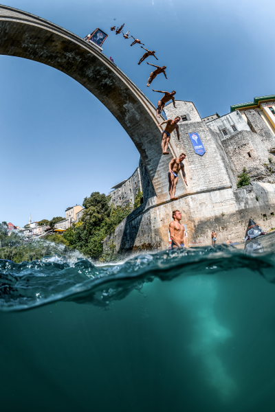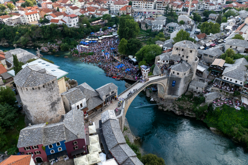 Once again, Mostar welcomed the Red Bull Cliff Diving World Series and brought together the world’s top cliff divers to compete against gravity, height, and stunning scenery. This event holds a special place in my heart because it is my ninth time photographing it since the series first came to Bosnia. As a location for this kind of event, Mostar is spectacular on so many levels. The emerald waters of the Neretva River and the iconic Old Bridge (Stari Most) make for the perfect visual backdrop. But it is the centuries-old tradition of jumping into the river from this bridge that gives the event its unique character.